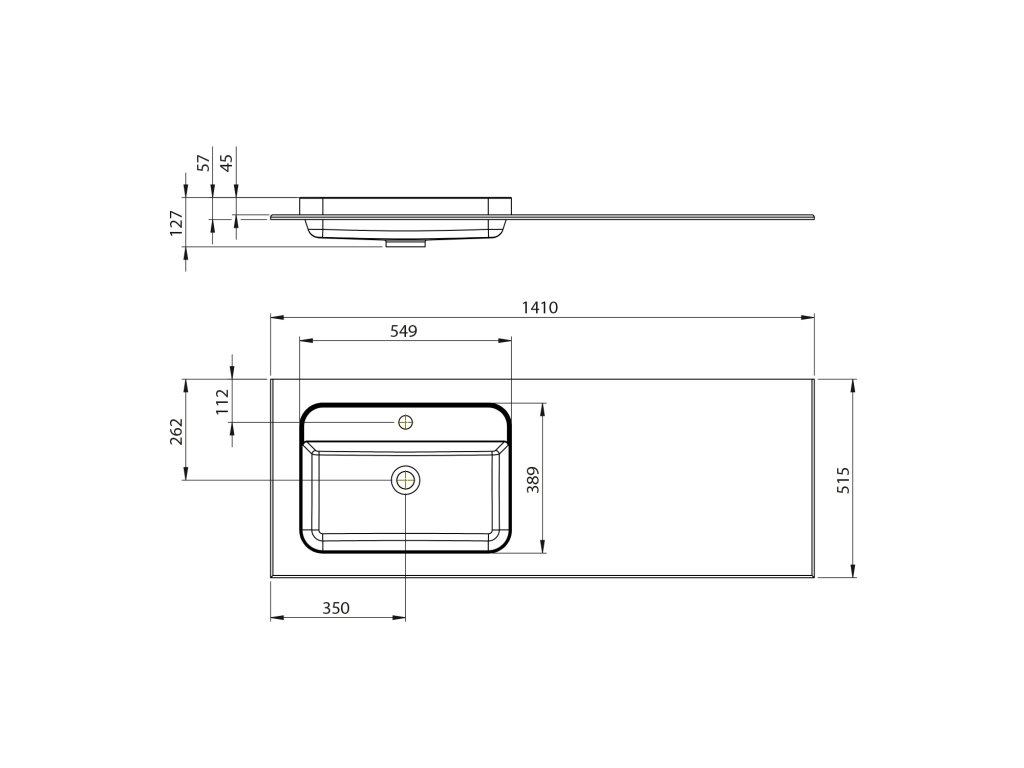 BRAHEA umyvadlo 141x51,5cm (70+70cm), levé, bílá mat