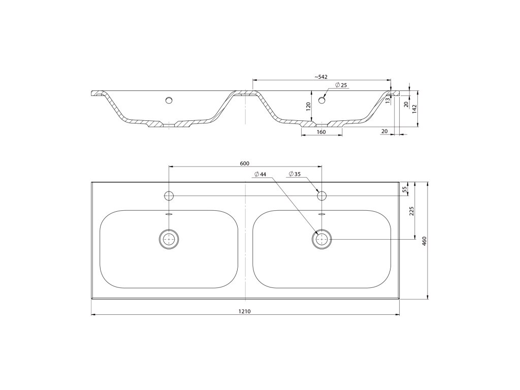 SIDRA dvojumyvadlo, litý mramor, 121x46cm, bílá