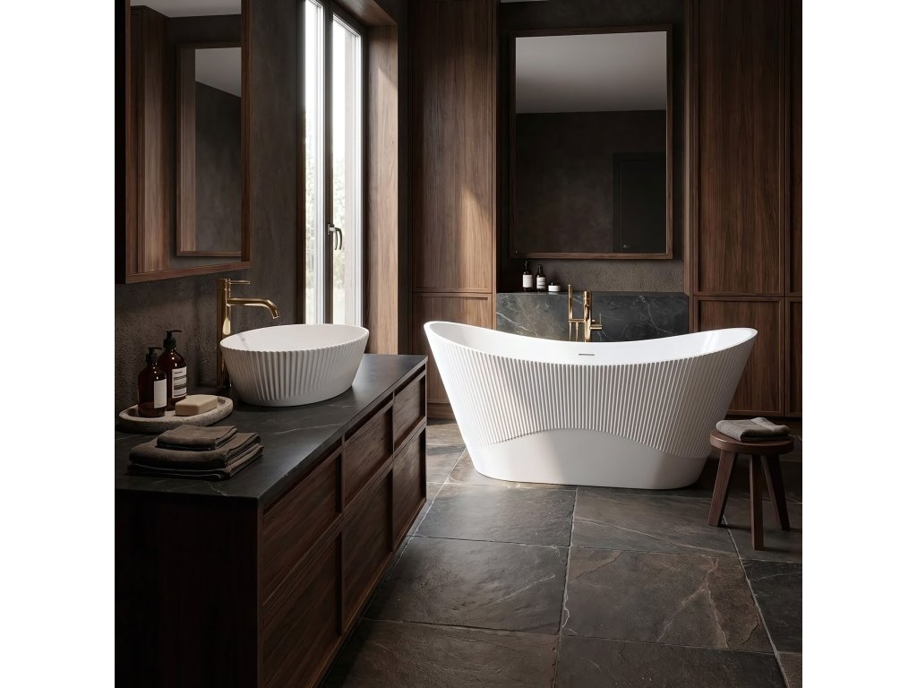 Objevte novou definici luxusu ve své mycí zóně díky umyvadlu na desku Rea Astoria. Tento výjimečný model zaujme jedinečným svislým rýhováním na vnějších stěnách, které dodává prostoru trojrozměrnost a umělecký charakter. Umyvadlo je vyrobeno z nejkvalitnější sanitární keramiky a spojuje bezchybnou estetiku s výjimečnou odolností při každodenním používání.Dekorativní rýhování – dodává tvaru lehkost a činí z umyvadla hlavní dekorativní prvek každé moderní koupelny.Vysoce kvalitní sanitární keramika – zaručuje odolnost, rezistenci proti poškrábání a dlouhou životnost produktu.Bílý lesklý povrch – usnadňuje udržení dokonalé čistoty a dodává interiéru lesk a svěžest.Montáž na desku – umožňuje působivě vystavit keramiku a poskytuje další místo na toaletní potřeby na desce.Optimální rozměry a oválný tvar – nabízejí maximální pohodlí při každodenní hygieně a zároveň minimalizují rozstřikování vody.