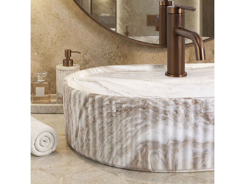 Hledáte stylové umyvadlo, které se stane centrálním bodem vaší mycí zóny? Objevte výjimečné umyvadlo na desku Rea Marcela 60 v matném provedení s jedinečným vzorem imitujícím přírodní kámen. Spojení moderní formy a syrové elegance dodá každé koupelně jedinečný charakter a luxusní vzhled.Rýhovaný povrch – dodává trojrozměrnost a moderní šmrnc, přitahuje pozornost a podtrhuje jedinečný design interiéruVzor imitující kámen – vnáší do koupelny přirozený klid a eleganci a zároveň zachovává všechny výhody snadno udržovatelné keramikyŠířka 60 cm – zajišťuje optimální prostor a komfort při každodenní hygieně a omezuje rozstřikování vody na deskuVysoce kvalitní sanitární keramika – zaručuje výjimečnou odolnost, odolnost proti poškrábání a neměnnou estetiku po mnoho let používáníTovární otvor pro baterii – umožňuje přímou montáž armatury, šetří místo na desce a usnadňuje instalaciMatné provedení – je velmi praktické, protože maskuje drobné usazeniny a mapy, a zachovává bezchybný vzhled déle