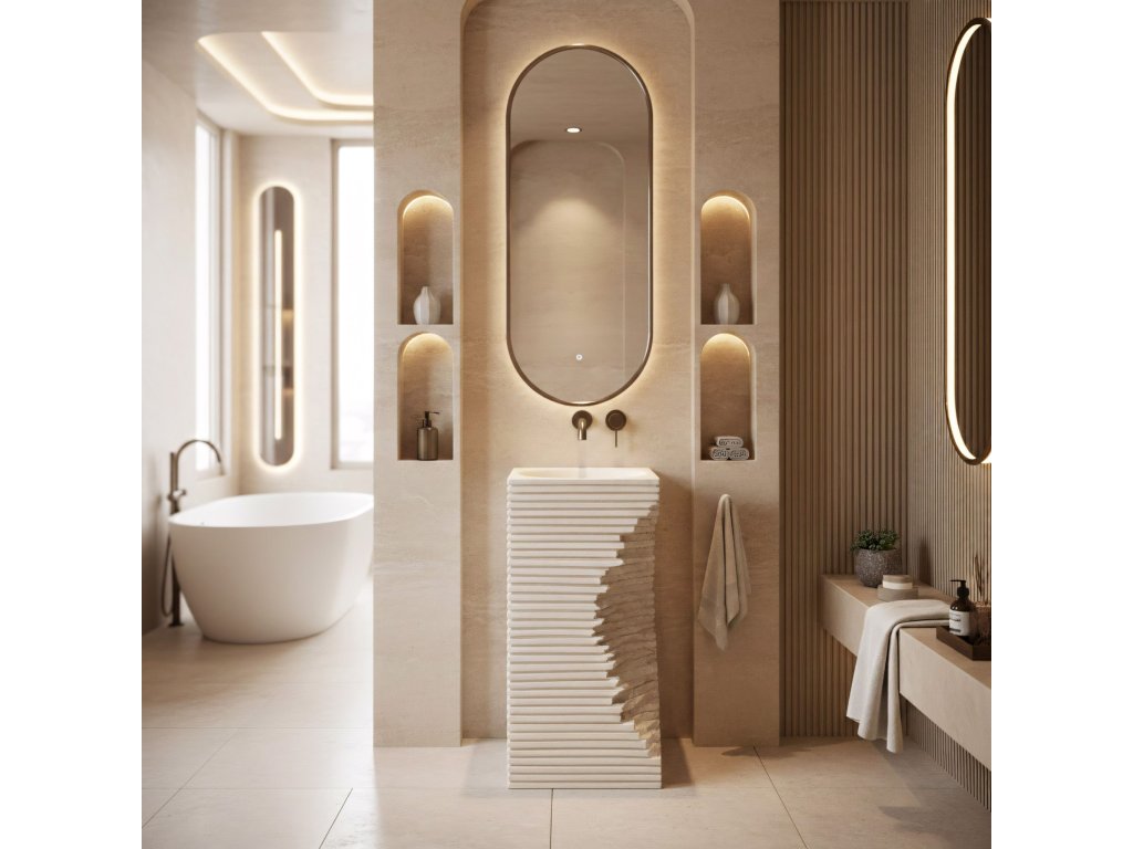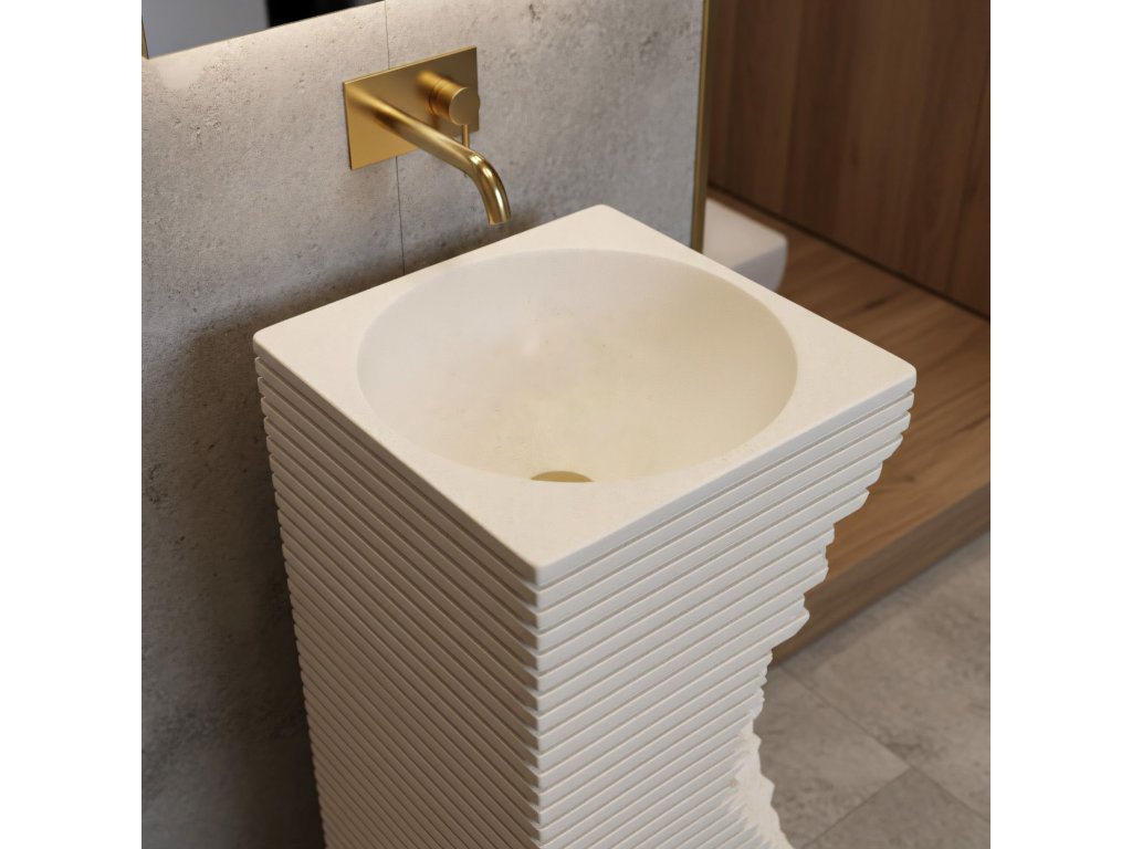 Hledáš prvek vybavení, který dodá tvé koupelně jedinečný a avantgardní charakter? Volně stojící podlahové umyvadlo Rea Travena Square je odvážná volba, která spojuje syrovost přírody s moderní geometrií. Je vyrobené z kompozitu Artificial Stone a není jen praktickým bodem mycí zóny, ale především poutavou užitnou sochou.Materiál Artificial Stone – použití kompozitního umělého kamene zaručuje mimořádnou odolnost, masivnost a rezistenci vůči mechanickému poškození. Materiál je příjemný na dotek a skvěle udržuje teplotu.Unikátní architektonický design – vnější rýhovaná hmota umyvadla se čtvercovým průřezem připomíná vrstvené bloky. Geometrické vodorovné linie jsou záměrně narušeny nepravidelným, hlubokým žlabem s texturou surového štípaného kamene, což dodává celku mimořádně originální a dynamický vzhled.Hladký, kulatý vnitřek – v promyšleném kontrastu k surovému a hranatému plášti má vnitřní část mísy dokonale kulatý a vyhlazený tvar. To zajišťuje volný odtok vody a usnadňuje každodenní údržbu.Promyšlená montáž (revizní otvor) – na zadní straně podstavce je umístěn speciální otvor. Umožňuje volné a pohodlné napojení sifonu a odpadní instalace a účinně skrývá všechny technické prvky.Podlahové umyvadlo Travena Square je ideální volbou pro milovníky netradičních řešení. Jeho surová „kamenná“ textura a asymetrické prolomení formy skvěle zapadnou do koupelen ve stylu wabi-sabi, loft nebo minimalismus a přinesou do interiéru výrazný architektonický akcent.