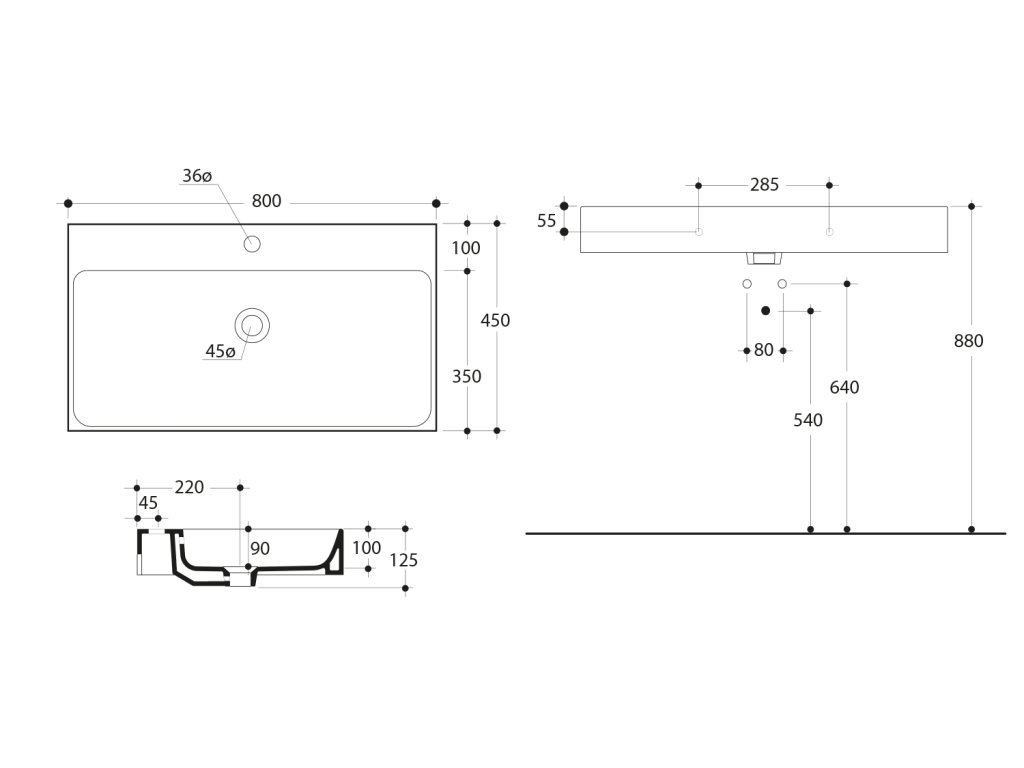 Konglomerátové umyvadlo REA GOYA - matné černé 50CM + konzole