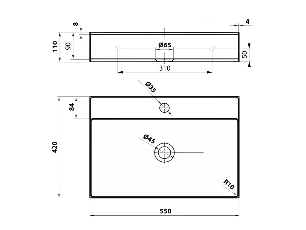 AURUM nerezové nástěnné umyvadlo, 55x42cm, včetně výpusti, měď mat
