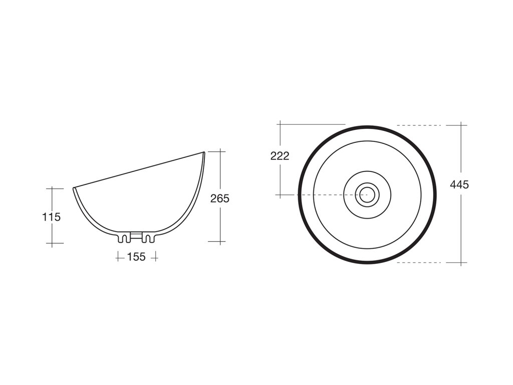 DOME OBLIQUO keramické umyvadlo na desku vysoké, Ø 44,5cm, bílá