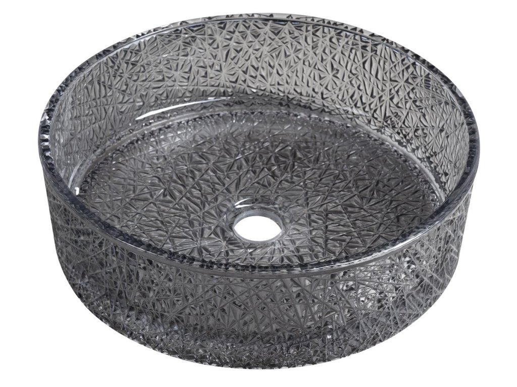 ERSEL skleněné gravírované umyvadlo na desku Ø 39,5cm, černá