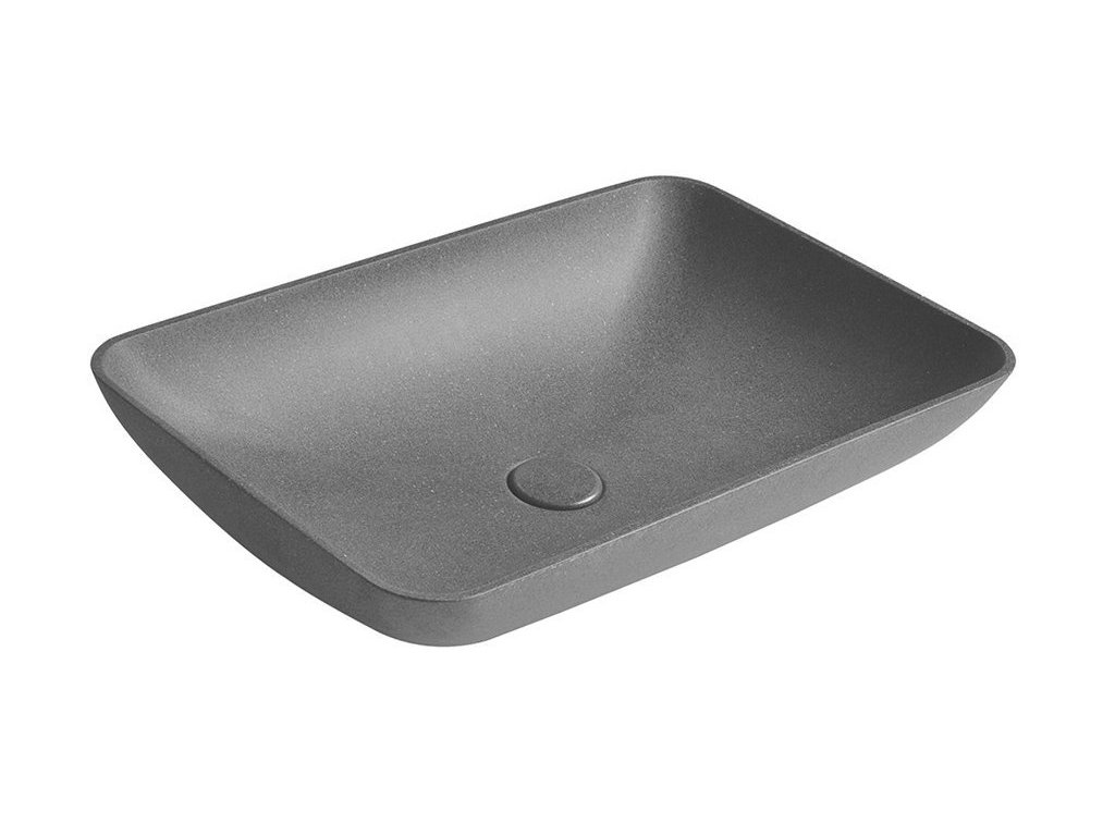 INFRANE betonové umyvadlo na desku, včetně výpusti, 57x37cm, černý granit