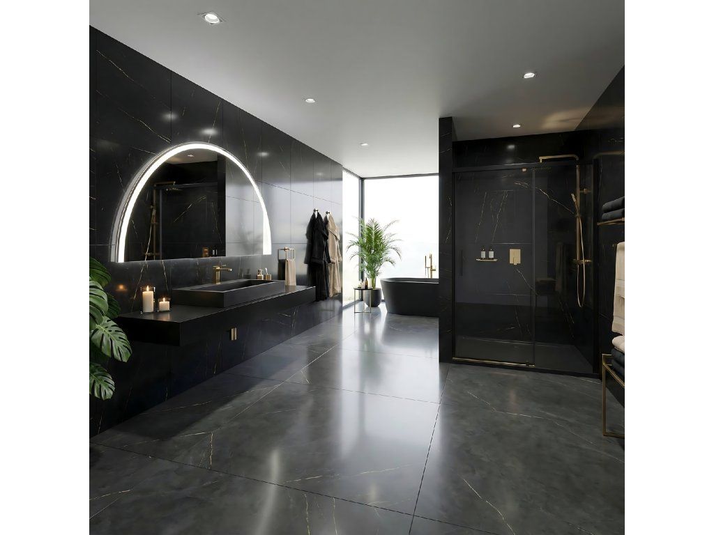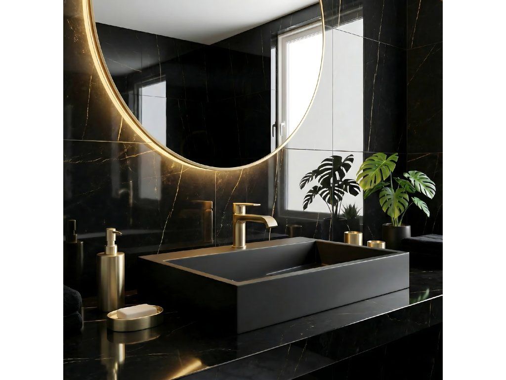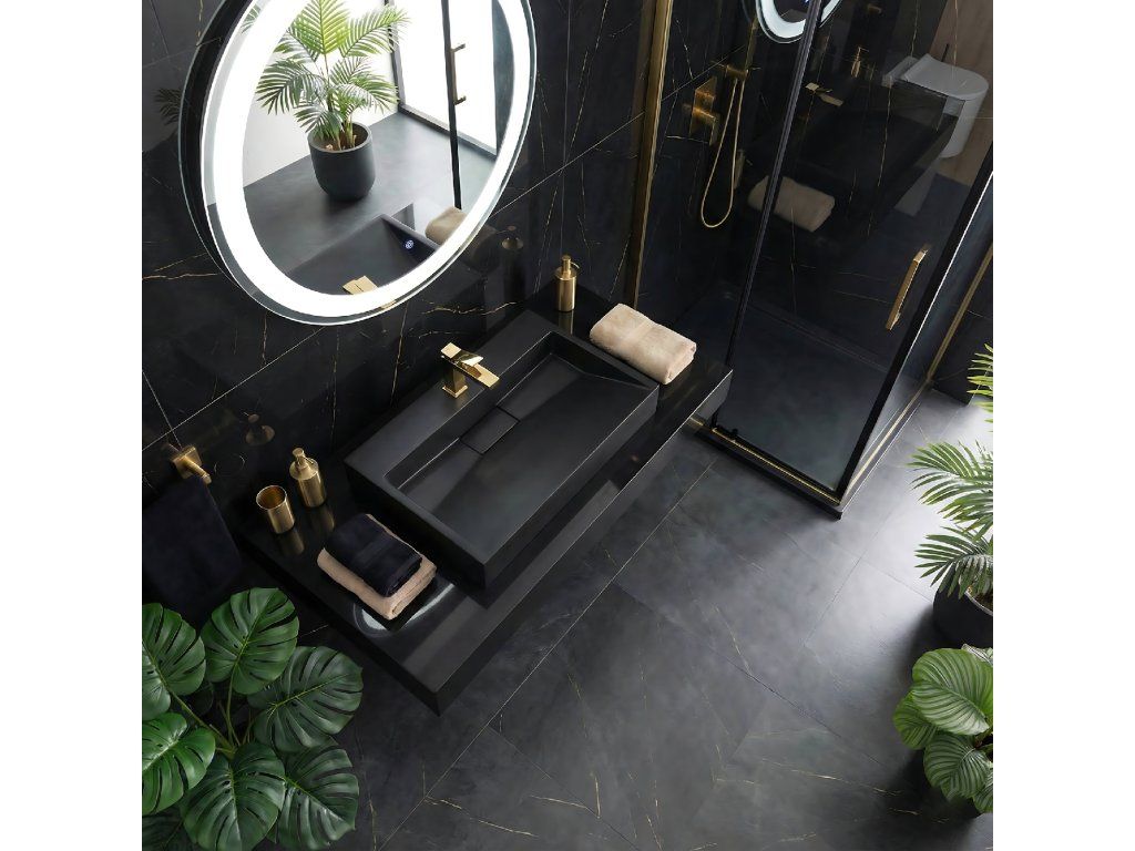 Konglomerátové umyvadlo na desku REA GOYA 70 cm - černé matné