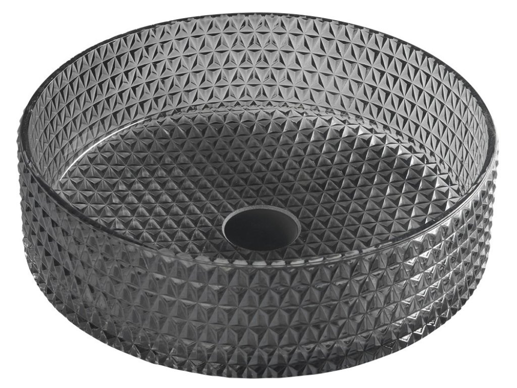 MARAGUA skleněné gravírované umyvadlo na desku Ø 39,5cm, černá