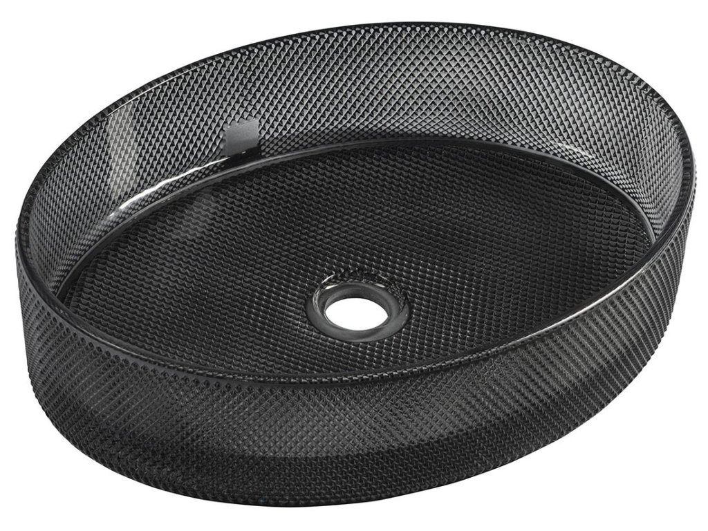 NOBAL skleněné gravírované umyvadlo na desku, 49x38 cm, černá