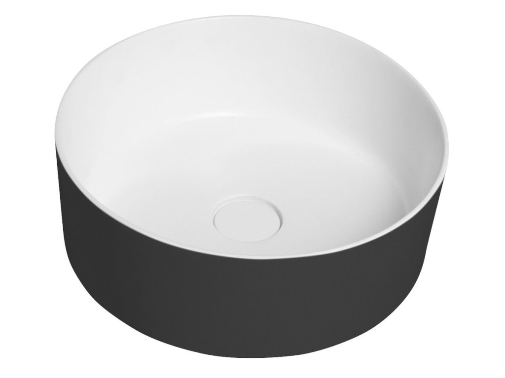 THIN umyvadlo na desku, Rockstone, Ø 38 cm, carina/bílá mat