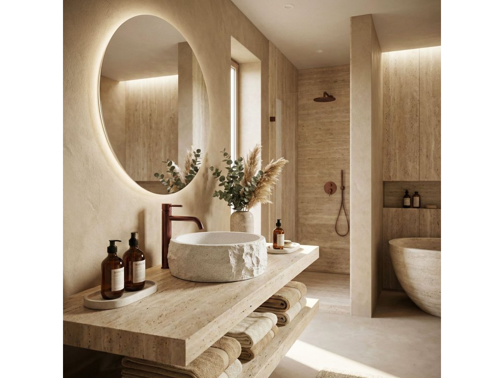 Zvol umyvadlo na desku Rea Alice, pokud hledáš výrazný, přírodní akcent do své koupelny. Tento kulatý model skvěle kombinuje surový vzhled kamene s moderní funkčností a komfortem při používání.Materiál Artificial Stone – umyvadlo je vyrobeno z pevného kompozitního umělého kamene. Tento materiál je velmi odolný vůči poškození a odštípnutí a zároveň je teplejší a příjemnější na dotek než běžná keramika.Textura štípaného kamene – vnější povrch mísy připomíná surovou, neopracovanou skálu. Světlý povrch s jemným tečkováním a nepravidelná, drsná struktura dodávají tvaru výrazný, řemeslný charakter.Hladký vnitřek – v silném kontrastu k strukturovanému plášti je vnitřek umyvadla dokonale hladký. Díky tomu voda volně odtéká do odpadu a každodenní údržba je rychlá a bezproblémová.Kulatý tvar a montáž na desku – klasický kulatý tvar je velmi praktický pro každodenní použití. Instalace přímo na desku nebo skříňku umožňuje plně vyniknout dekorativní „kamenné“ textuře ze všech stran.Umyvadlo Rea Alice je ideální volbou pro milovníky designu inspirovaného přírodou. Jeho surový vzhled se skvěle hodí do moderních, minimalistických i wabi-sabi interiérů a vnese do koupelny výrazný organický akcent.