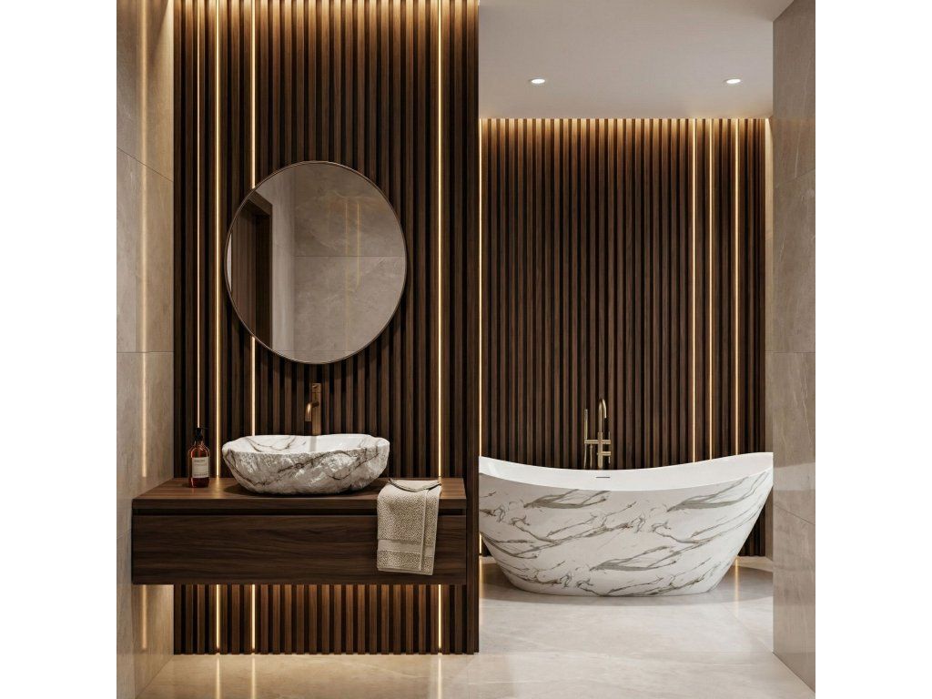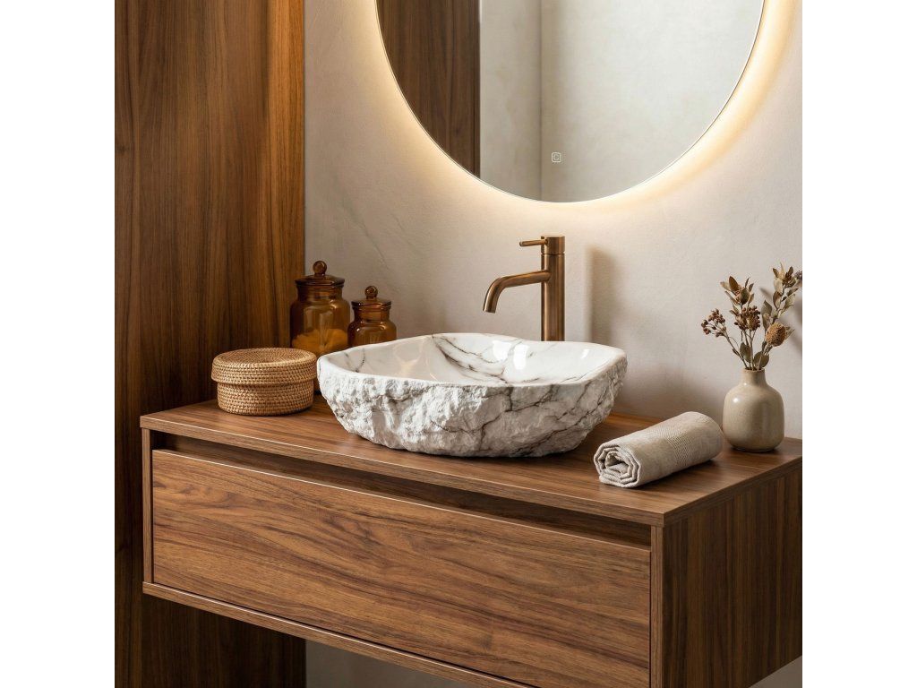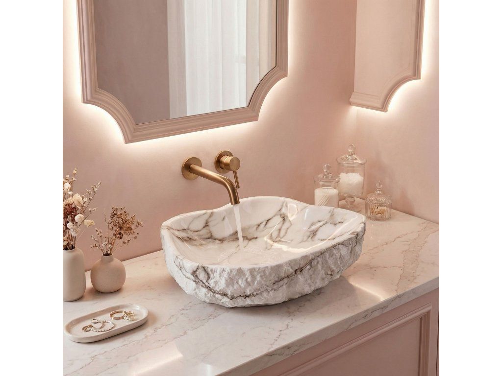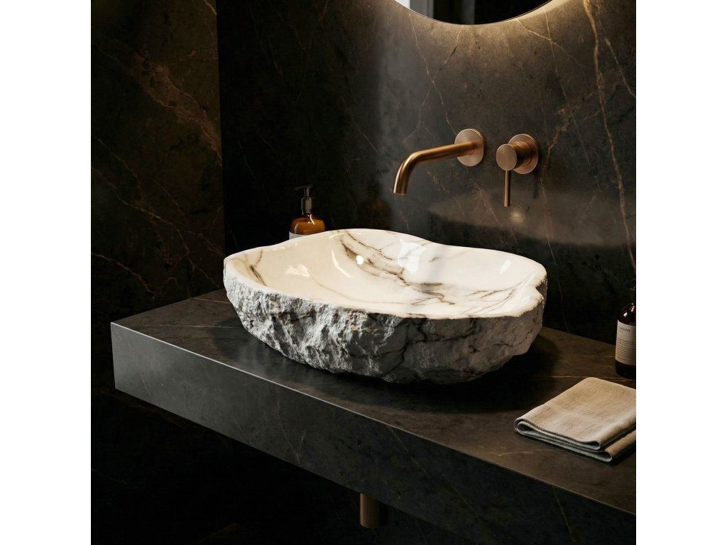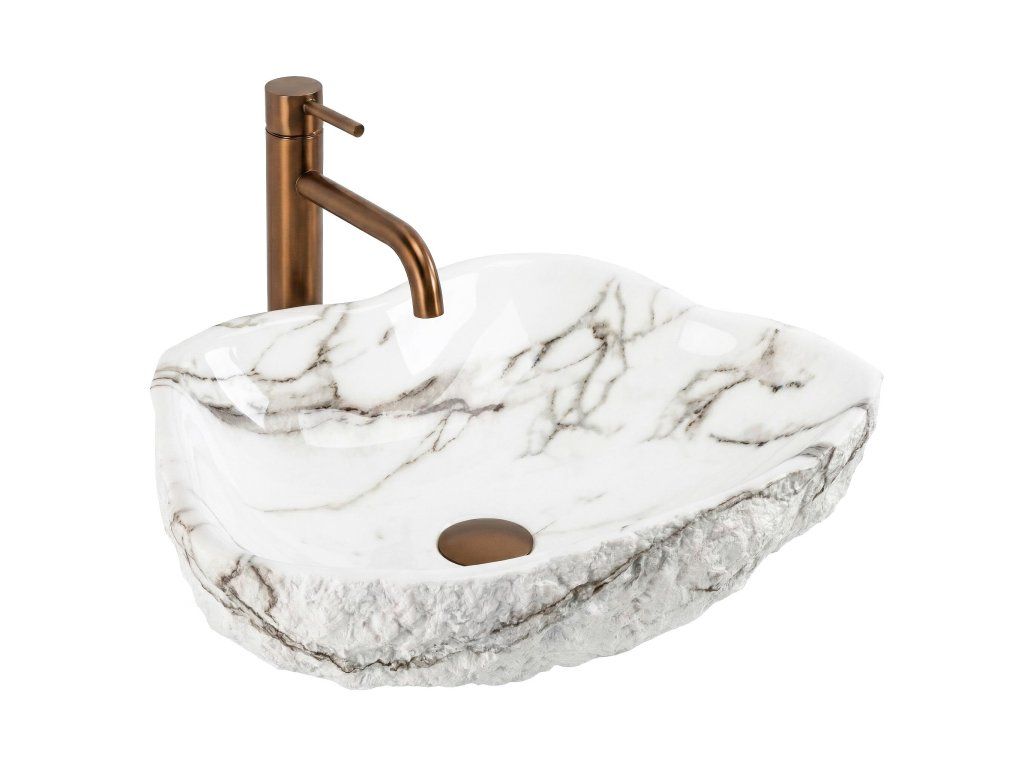 Vneste do své koupelny nádech luxusu s umyvadlem na desku Rea Isla Aiax. Tento unikátní model zaujme neopakovatelným organickým tvarem a mramorovým vzorem. Vyrobeno z vysoce kvalitního kompozitu Artificial Stone, představuje perfektní spojení syrové krásy přírody s inovativní odolností.Matná kamenná struktura – vnější strana mísy se vyznačuje syrovou kamennou texturou v matném provedení, připomínající přírodní skalní blok.Inovativní Artificial Stone – umělý kompozitní kámen zaručuje nadstandardní odolnost proti poškození a odštípnutí, přičemž je to materiál příjemnější a teplejší na dotek než skutečný kámen.Elegantní mramorový vzor – bílý podklad protkaný výraznými tmavými žilkami napodobuje ušlechtilý mramor a dodává aranžmá třídu a nadčasovou prestiž.Vnitřek ve vysokém lesku – střed mísy je dokonale vyleštěn. To vytváří zajímavý kontrast s matným skalnatým povrchem a zároveň usnadňuje každodenní čištění a zajišťuje volný odtok vody.Montáž na desku – model určený k instalaci na koupelnovou desku nebo skříňku, což umožňuje plně vyniknout sochařskému tvaru umyvadla v prostoru koupelny.Umyvadlo Rea Isla Aiax je ideální volbou pro interiéry zařízené v moderním stylu, glamour nebo modern classic. Spojení netypického tvaru, lesklého vnitřku a matného vnějšího povrchu z něj činí výrazný, neobyčejně luxusní prvek vybavení každé stylové koupelny.