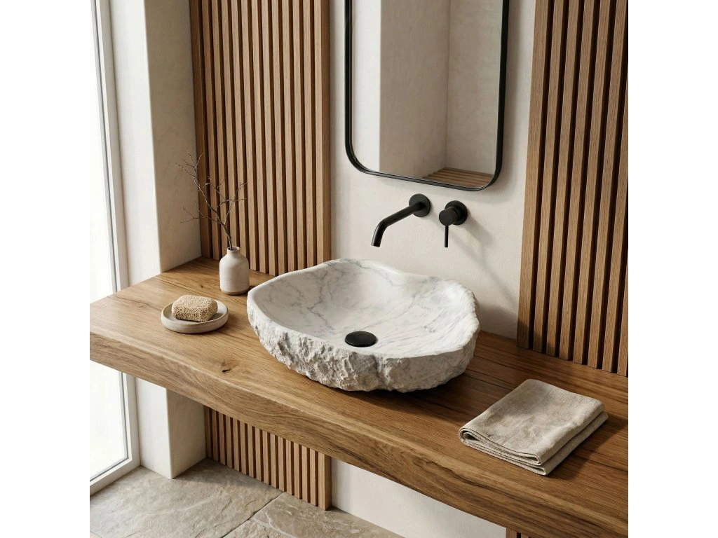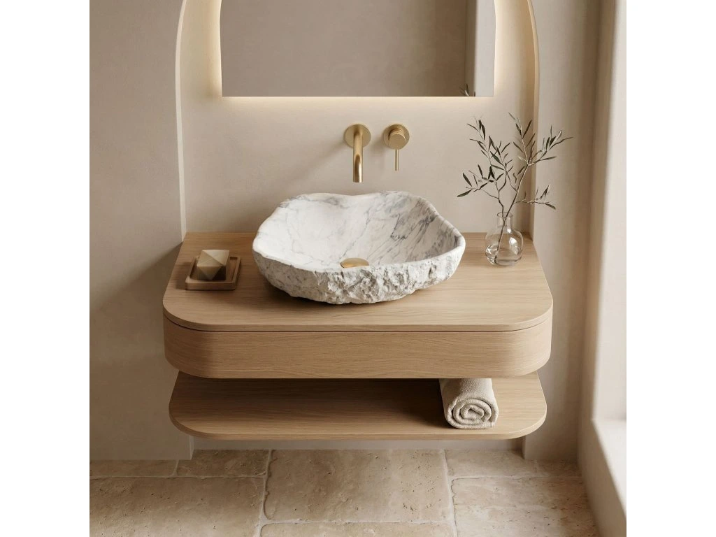 Vytvořte si ve své koupelně jedinečnou zónu odpočinku s umyvadlem na desku Rea Isla Marlo. Tento neotřelý model přitahuje pozornost nepravidelným, organickým tvarem a povrchem imitujícím mramor. Je vyroben z kompozitního umělého kamene Artificial Stone a spojuje surovou estetiku s moderní odolností.Struktura kamene – vnější povrch mísy má výraznou, hrubou texturu připomínající neopracovanou skálu, což jí dodává autentický, řemeslný charakter.Materiál Artificial Stone – použitý kompozit je mimořádně pevný a odolný proti mechanickému poškození, a zároveň je příjemnější a teplejší na dotek než přírodní kámen.Mramorový vzor – světlý odstín obohacený výrazným šedým žilkováním napodobuje strukturu přírodního mramoru a vnáší do interiéru eleganci a prestiž.Hladký vnitřek – ve stylovém kontrastu k surové vnější struktuře je vnitřek umyvadla dokonale hladký, což zajišťuje snadné čištění a volný odtok vody.Montáž na desku – umyvadlo je určeno k umístění na desku nebo koupelnovou skříňku, díky čemuž je jeho sochařská dvoustrukturní forma plně vystavena.Umyvadlo Rea Isla Marlo je skvělou volbou do koupelen v moderním nebo glamour stylu i do interiérů inspirovaných blízkostí přírody. Spojení organického tvaru s elegantním mramorovým motivem z něj činí mimořádně efektní a praktický prvek vybavení.