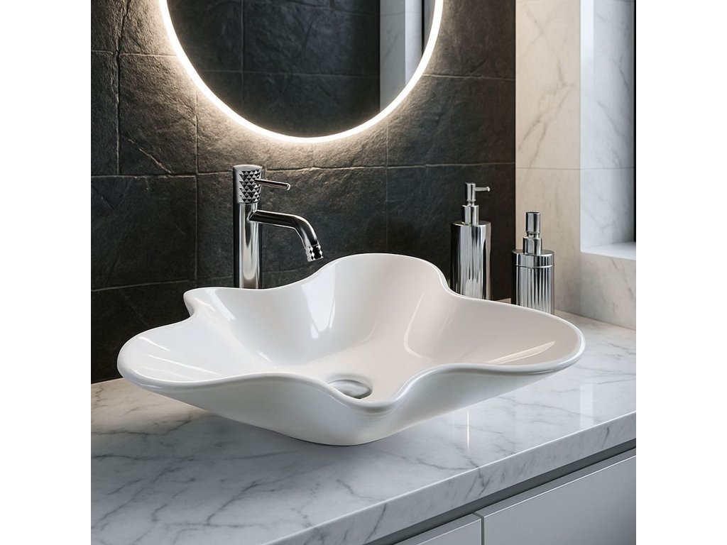 Nástěnné umyvadlo Izolda je výjimečná volba pro ty, kteří oceňují moderní design a originální tvary. Jeho nepravidelná forma inspirovaná přírodními liniemi z něj činí výrazný dekorativní prvek, který změní charakter každé koupelny.