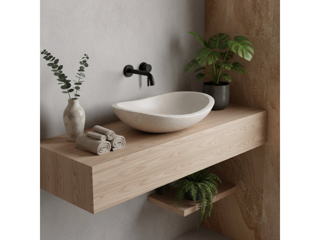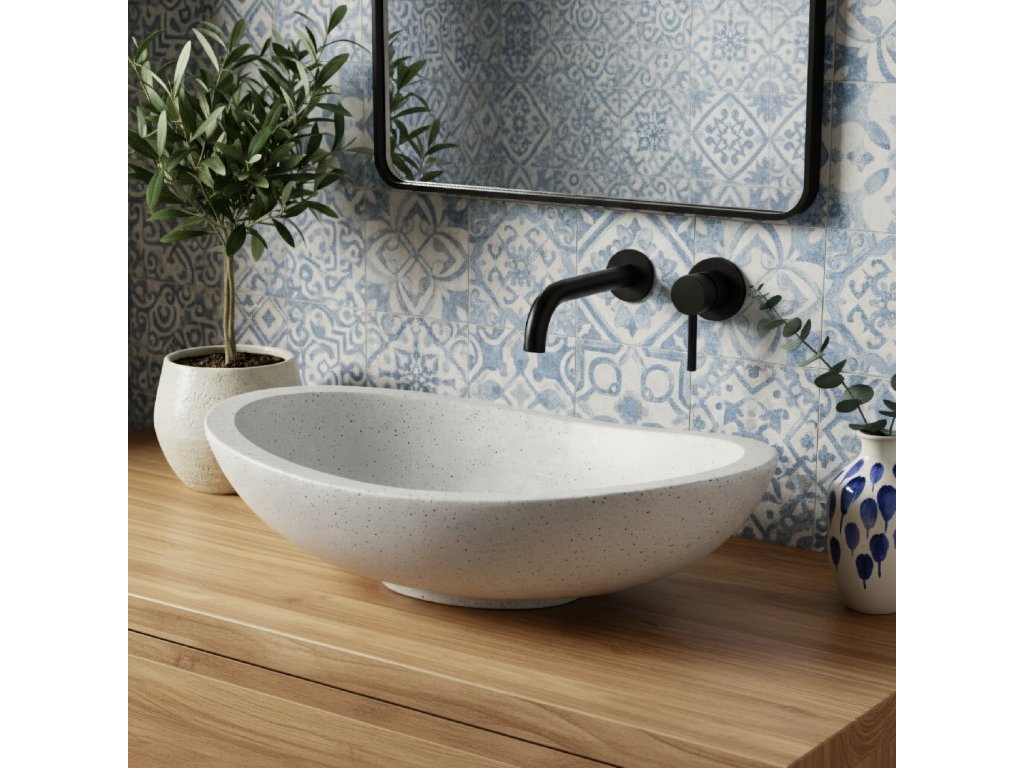 Chcete dodat koupelně stylový, moderní prvek? Seznamte se s umyvadlem na desku Rea Leona z materiálu Artificial Stone. Tento pokročilý kompozit – směs přírodního kameniva a pryskyřic – spojuje vzhled přírodního kamene s výjimečnou odolností. Elegantní oválný tvar a jedinečná skvrnitá struktura dodají interiéru současný charakter.Materiál: Artificial Stone (kompozitní kámen) – speciální směs pro mimořádnou pevnost a trvanlivost.Vysoká odolnost – výrazně odolnější proti poškrábání, nárazům a skvrnám než tradiční keramika.Hygienický povrch – neporézní materiál neabsorbuje nečistoty ani vlhkost a brání množení bakterií.Vzhled přírodního kamene – jedinečné „pepřeno-solené“ zrnění skvěle zapadne do moderních koupelen.Nástavná (na desku) montáž – určené pro instalaci na desku či skříňku, s velkou flexibilitou při návrhu.Minimalistický design – bez otvoru pro baterii a bez přepadu; pro nástěnné nebo vysoké stojánkové baterie.Umyvadlo Rea Leona je skvělou volbou pro milovníky originálního designu – nabízí krásný vzhled, snadnou údržbu a vysokou odolnost.