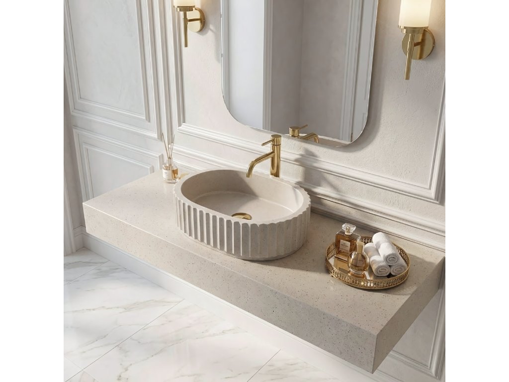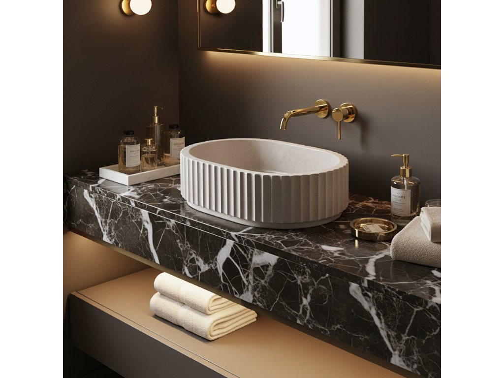 Vneste do své koupelny přírodní akcent výběrem umyvadla na desku Rea Mika Ivory. Tento model zaujme světlou barevností a zajímavou kombinací povrchů. Surová, drsná vnější textura kontrastuje s dokonale hladkým vnitřkem mísy. Celek je vyroben z moderního kompozitního umělého kamene Artificial Stone, který zaručuje dlouhou životnost.Odstín Ivory – umyvadlo je laděno do světlého, teplého odstínu lomené bílé. Tato univerzální barva krásně prosvětluje interiér a zapadá do estetiky přírodních kamenů, jako je pískovec či vápenec.Vlastnosti kompozitu – použití materiálu Artificial Stone zajišťuje vysokou tvrdost a odolnost a zároveň je příjemnější na dotek než keramika.Hygienický vnitřek – vnitřní část mísy je hladce vyleštěná, což zabraňuje usazování nečistot a usnadňuje každodenní čištění, i přes porézní vnější plášť.Provozní odolnost – inovativní materiál je odolný vůči vlhkosti, vysokým teplotám i náhodným nárazům a zachovává si estetický vzhled po mnoho let.Montáž na desku – model je určen k instalaci na skříňku nebo koupelnovou desku, což umožňuje plně vyniknout jeho dekorativním vlastnostem.Umyvadlo Rea Mika Ivory je ideální volbou pro milovníky stylu japandi, skandinávského a rustikálního. Světlá hmota s kamenným charakterem nejen plní praktickou funkci, ale stává se i jemným dekorativním prvkem, který prosvětluje koupelnu.