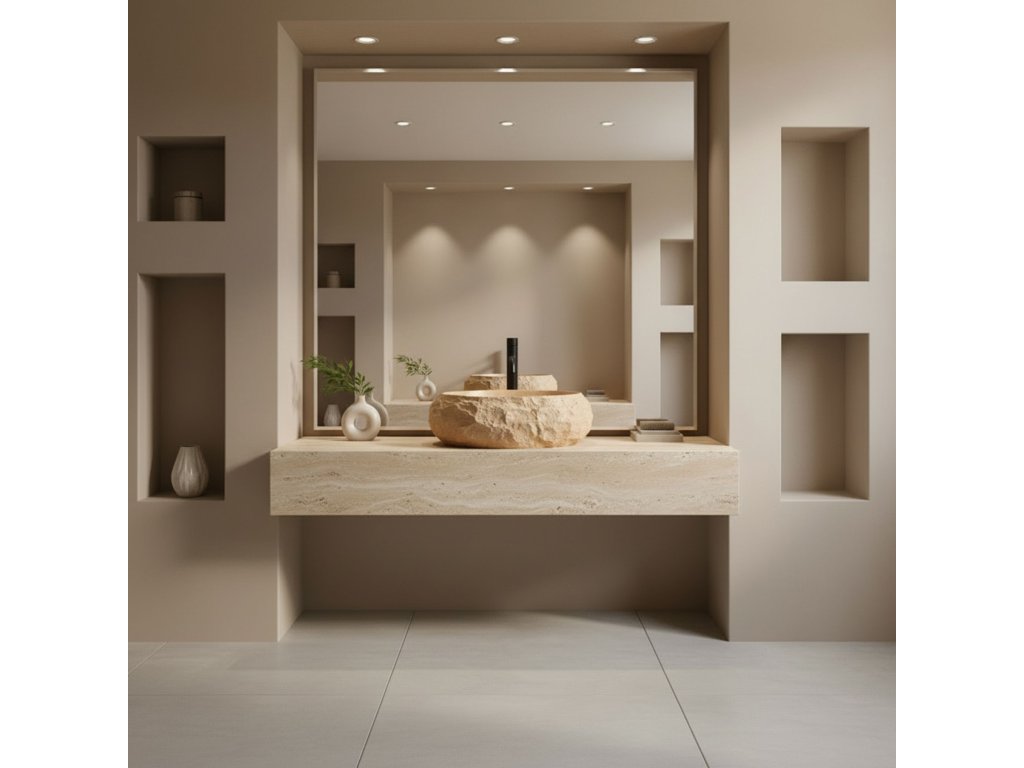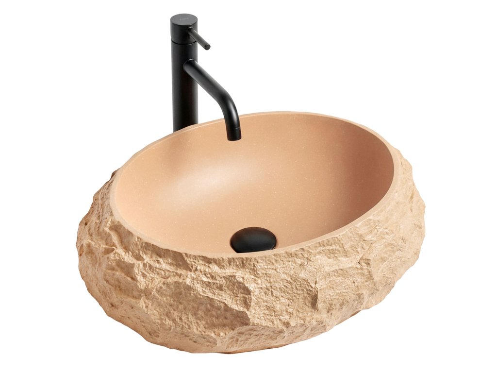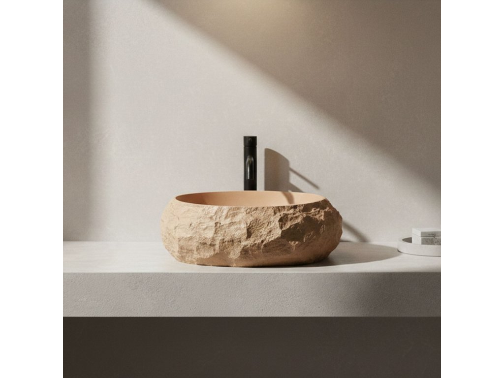 Hladký vnitřek mísy zaručuje snadnou údržbu, zatímco surová kamenná textura zvenčí dodává interiéru charakter a neopakovatelný půvab. Je to volba pro ty, kdo hledají elegantní designový prvek do koupelny, který bude stejně praktický jako působivý.