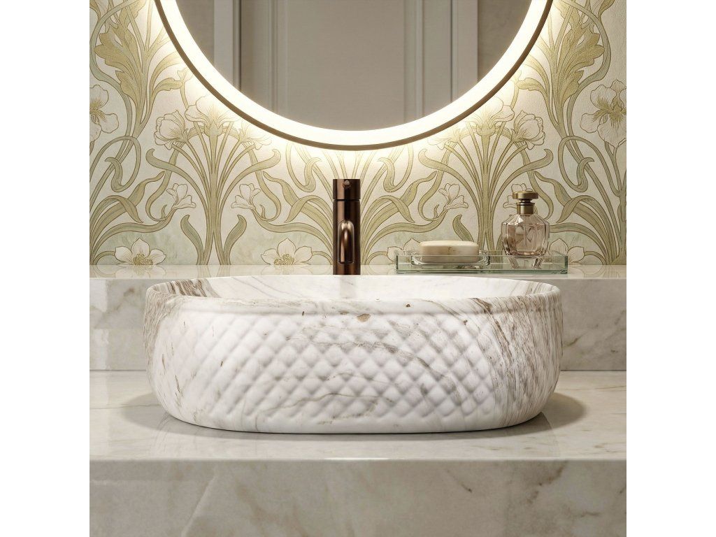 Objevte mimořádné spojení přírodní estetiky a moderní formy, které do vašeho interiéru vnese umyvadlo na desku Oktawia s unikátním vzorem imitujícím kámen. Tento model zaujme nejen svou oválnou linií, ale především fascinujícím kontrastem mezi hladkým vnitřkem a bohatě strukturovaným vnějším povrchem. Vyrobené z nejkvalitnější sanitární keramiky je symbolem trvanlivosti a vytříbeného stylu, který promění každou mycí zónu.Efektní vnější reliéf – charakteristická dekorativní struktura na vnější straně mísy dodává výrobku trojrozměrný efekt a činí z umyvadla hlavní dekorativní bod koupelny.Vzor imitující kámen – saténové provedení s motivem přírodního žilkování dokonale zapadá do trendů eko, loft i moderní klasiky a dodává interiéru ušlechtilý charakter bez náročné údržby pravého kamene.Hladký vnitřní povrch – zajišťuje rychlý odtok vody a usnadňuje udržení hygienické čistoty, přičemž minimalizuje usazování vodního kamene a nečistot.Univerzální oválný tvar – ergonomický tvar mísy zabraňuje rozstřikování vody na desku a poskytuje maximální komfort při každodenní hygieně.