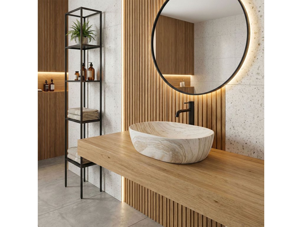 Objevte jedinečné spojení přírodní estetiky a moderního designu s umyvadlem na desku Rea Amelia Saturn. Jeho matné provedení a vzor imitující kámen z něj činí centrální prvek koupelnového interiéru. Umyvadlo je vyrobeno z vysoce kvalitní sanitární keramiky, která zajišťuje odolnost proti poškrábání i každodennímu používání a zachovává bezchybný vzhled po dlouhá léta.Vzor imitující kámen dodává interiéru luxusní a organický charakter a skvěle ladí s různými styly.Matný povrch je mimořádně elegantní a výrazně usnadňuje údržbu, protože minimalizuje viditelnost šmouh.Šířka 48 cm poskytuje optimální prostor pro každodenní hygienu, aniž by zabírala příliš mnoho místa na desce.