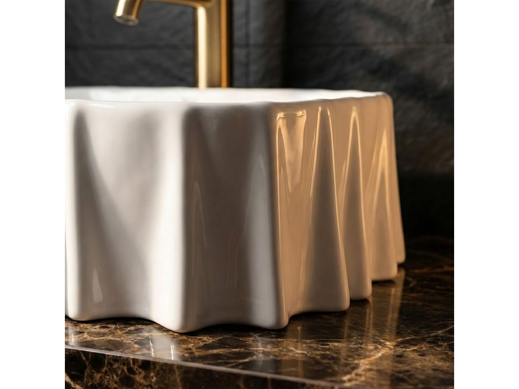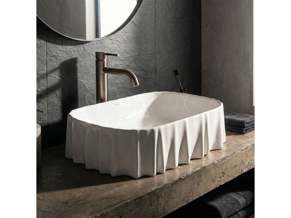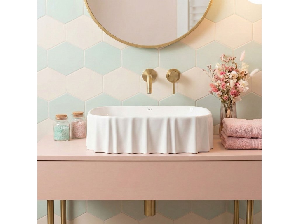 Hledáte výjimečný detail, který oživí interiér koupelny? Bílé umyvadlo na desku REA Atria představuje neotřelý design evokující jemně zvlněnou látku, jenž přitahuje pozornost a dodává prostoru vizuální lehkost. Použití špičkové sanitární keramiky zaručuje bezchybný vzhled po dlouhá léta i mimořádnou odolnost.