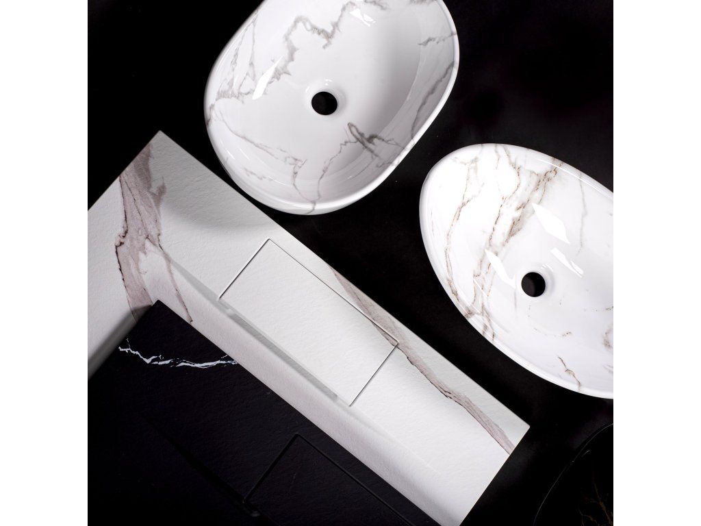Umyvadlo v černém matném provedení s jedinečným mramorovým vzorem se navíc díky speciální fázi výroby snadno čistí a je velice odolné.