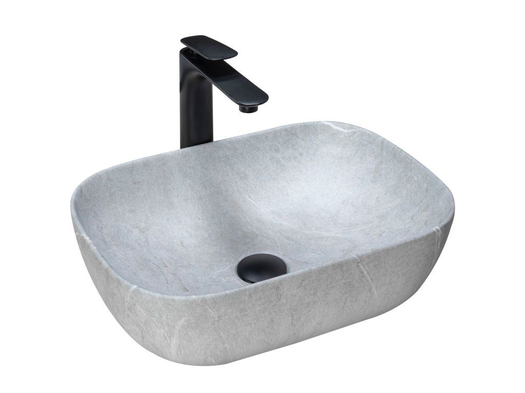 Umyvadlo je vyrobeno v elegantním provedení napodobujícím kámen, přičemž díky technice, jakou byla upravena svrchní vrstva umyvadla, je každý vzor unikátní. Díky speciální fázi výroby se snadno čistí a je velice odolné.