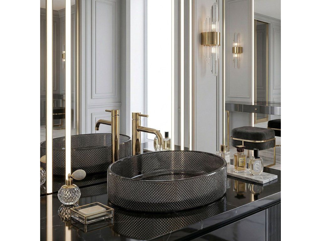 Hledáte prvek, který dodá vaší koupelně skutečně královský lesk? Umyvadlo na desku Mirella, vyrobené z tlustého dekorativního skla, je ideální volbou pro ty, kteří oceňují exkluzivitu a design inspirovaný šperkařstvím. Jeho jedinečná struktura z něj činí ústřední bod každé aranžace a okouzluje hrou světla i precizností zpracování, která promění každý interiér.Skleněný materiál – použití skla zaručuje nejen úžasný vizuální efekt, ale také vysokou odolnost proti poškrábání a každodennímu používání.Šperkařská textura povrchu – dekorativní reliéf na vnější straně umyvadla připomíná broušené drahokamy a dodává celku luxusní a vytříbený charakter.Úchvatné světelné odlesky – speciální struktura materiálu způsobuje, že se umyvadlo pod světlem nádherně třpytí a vnese do koupelny dynamiku i eleganci.Ideální pro různé styly – oválná forma a bohaté zdobení činí tento model perfektním pro glamour interiéry, klasické art deco i moderní luxury prostory.Hygienická hladkost – hladké provedení vnitřku mísy zabraňuje usazování nečistot, což umožňuje zachovat bezchybnou čistotu s minimální námahou.