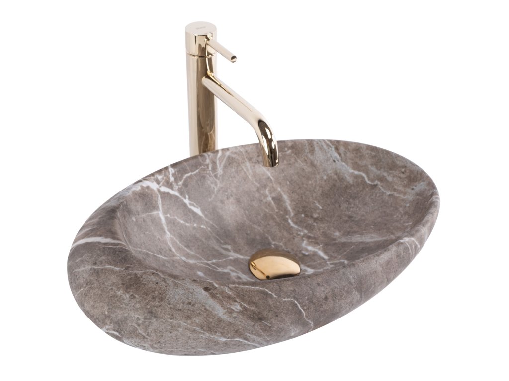 Moderní série umyvadel imitující kámen. Díky technice, kterou byla vyrobena vrchní vrstva umyvadla, má každý ekzemplář jedinečný a jedinečný vzor. Tento efekt imituje přírodní kámen. Ergonomický tvar mísy umožňuje vodě volně odtékat. Umyvadlo lze namontovat na desku nebo skříňku. K tomuto umyvadlu nabízíme perfektní vysoké baterie a sifony v mnoha barvách.