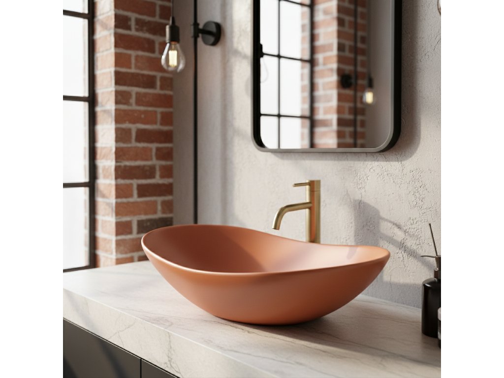 Umyvadlo na desku Rea Royal v barvě Cinnamon Matt představuje elegantní spojení stylu a funkčnosti. Je vyrobeno ze 100% vysoce kvalitní sanitární keramiky, která zaručuje dlouhou životnost a spolehlivost.