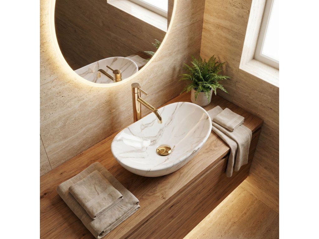 Představujeme Vám nové moderní umyvadlo na desku série Rea Royal. Umyvadlo oválného tvaru je vyrobeno z materiálů nejvyšší kvality a jeho vlastnosti splní veškeré vaše požadavky. Tento model ocení především zákazník, hledající nejen funkční, ale také estetické řešení. Umyvadlo je určeno k montáži na desku, ale je možné ho kombinovat i se skřínkou.
