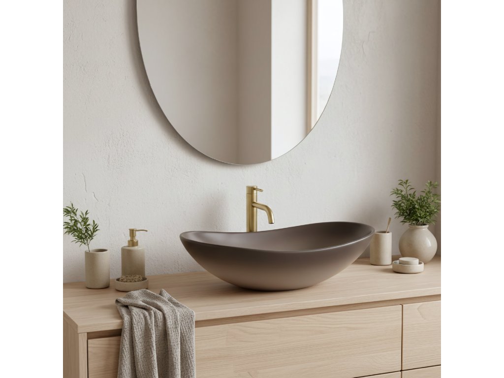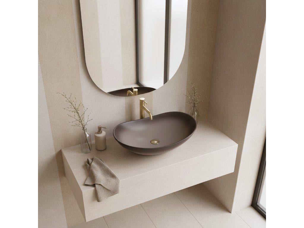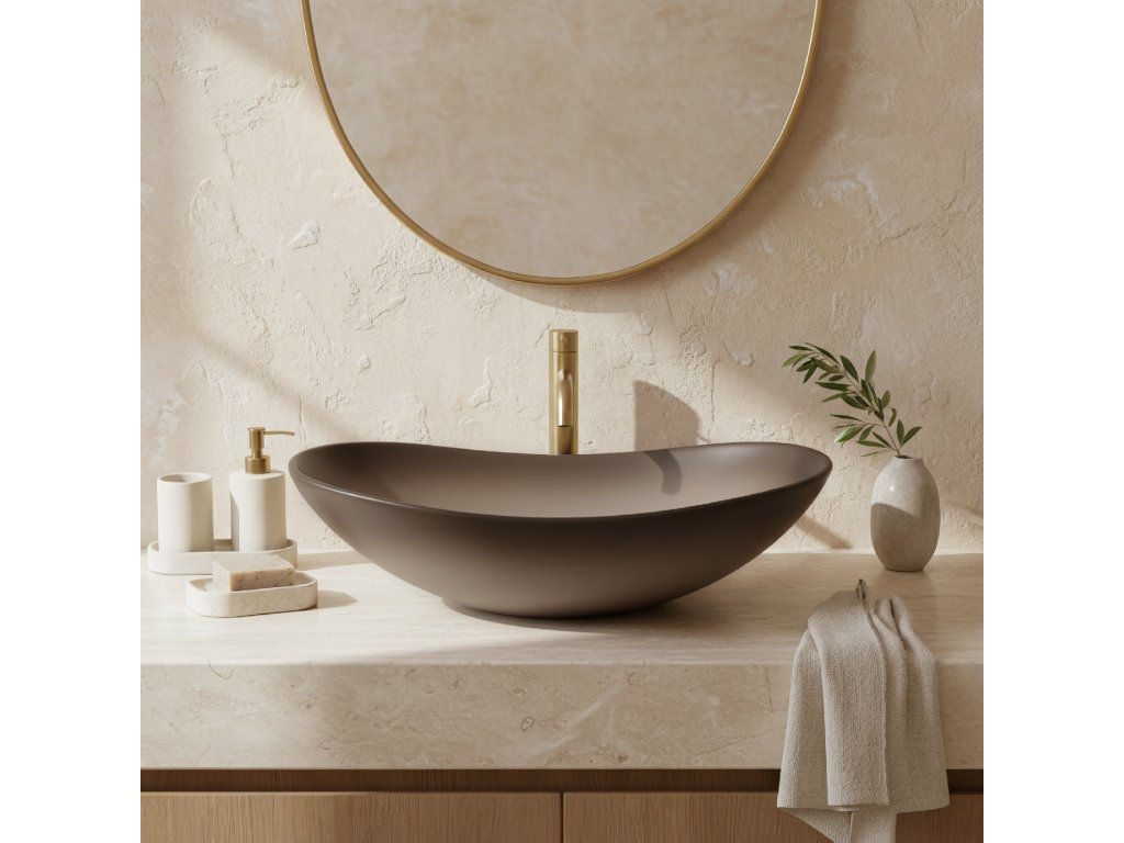 Objevte novou podobu klasiky s umyvadlem na desku Rea Royal Ombre. Tento model spojuje bestsellerový tvar série Royal s moderním designem. Umyvadlo vyniká matným povrchem a jedinečnou barevností a představuje elegantní a funkční prvek koupelny.Klasický tvar Royal – umyvadlo má pro tuto sérii typický oválný a plynulý tvar, který je velmi ergonomický a hodí se do většiny interiérů.Efekt Ombre – povrch umyvadla se vyznačuje plynulým stínováním, které přechází od světlejšího středu k tmavším, sytým hnědým tónům na okrajích.Sanitární keramika – provedení z vysoce kvalitní keramiky zajišťuje dlouhou životnost, odolnost proti poškrábání a snadnou údržbu hygieny i přes matnou strukturu.Instalace na desku – model je určen k montáži na desku nebo koupelnovou skříňku, což umožňuje úsporu místa a estetické zvýraznění produktu.Univerzální design – spojení nadčasového oválného tvaru s moderním dekorem zajišťuje, že se umyvadlo hodí jak k retro armaturám, tak k minimalistickým interiérům.Umyvadlo Rea Royal Ombre je ideální volbou pro ty, kteří si cení harmonie v koupelně. Spojuje klid klasického tvaru s nádechem extravagance v podobě stínovaného povrchu a stává se decentní, ale působivou ozdobou interiéru.
