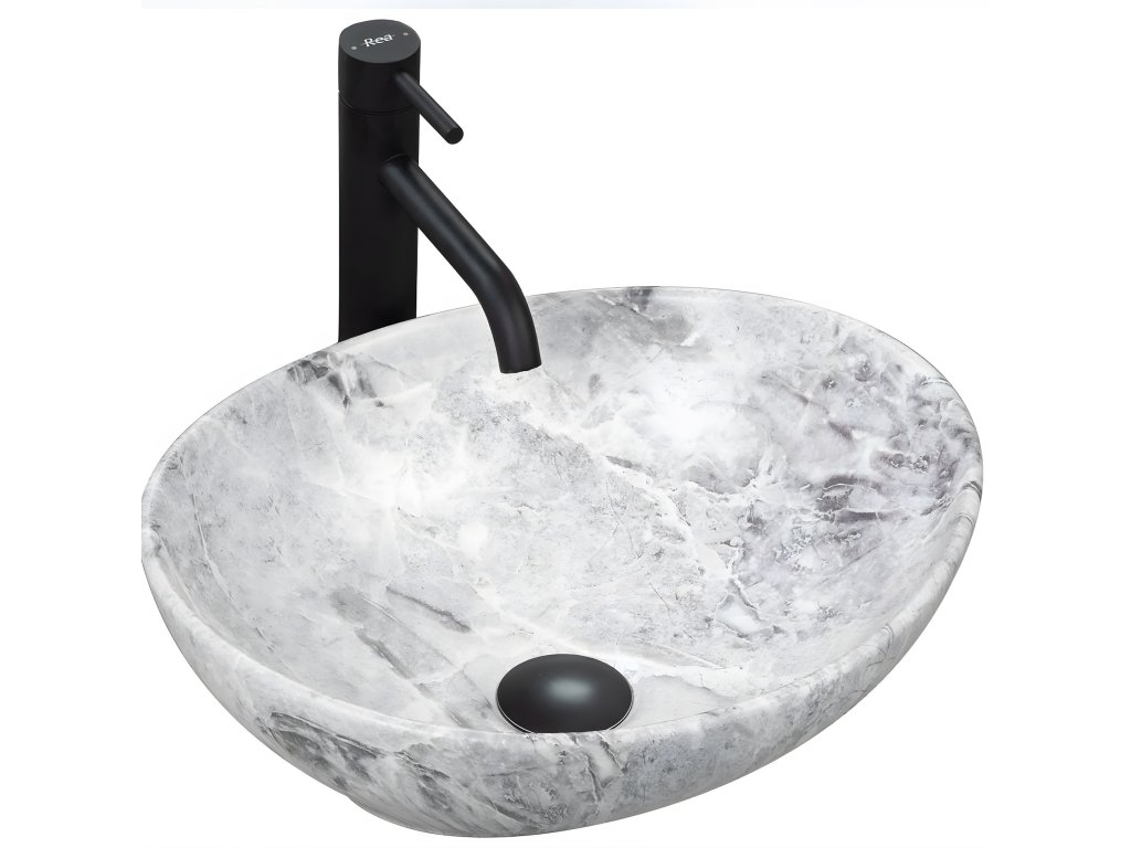 Umyvadlo je vyrobeno v šedém provedení s mramorovým efektem a díky speciální fázi výroby se snadno čistí a je velice odolné. Díky zvolené technice povrchové úpravy je každé umyvadlo originální, má svůj jedinečný vzor.