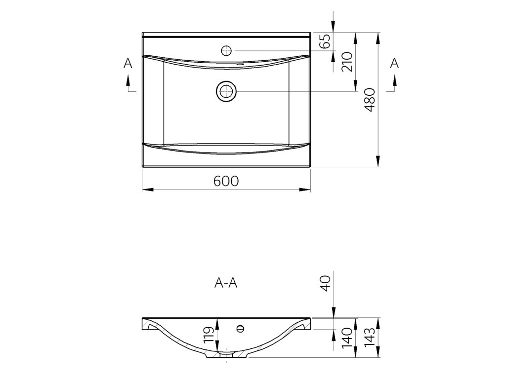 LUCIOLA umyvadlo, litý mramor, 60x48cm, bílá