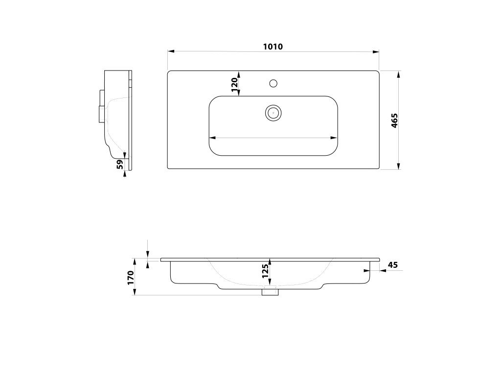PIEDRA keramické umyvadlo nábytkové 101x46,5cm, bílá
