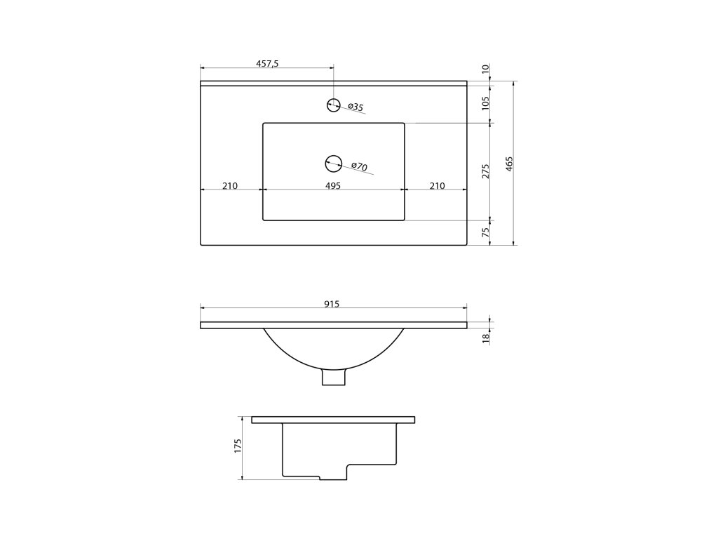 SLIM keramické umyvadlo, nábytkové, 90x46,5cm, bílá