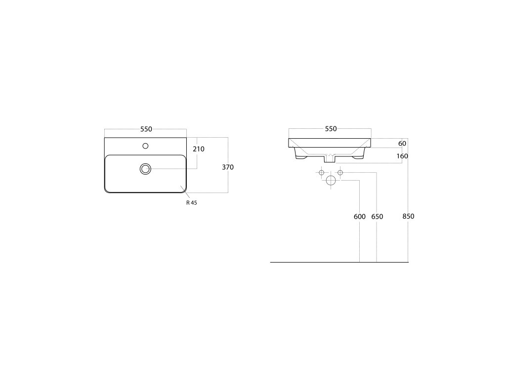 THALIE 55 keramické umyvadlo nábytkové 55x37cm, bílá