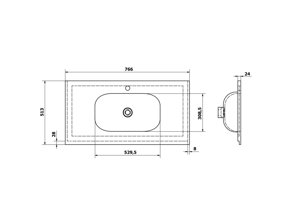 TREOS umyvadlo 76,6x51,3 cm, rockstone, bílá mat