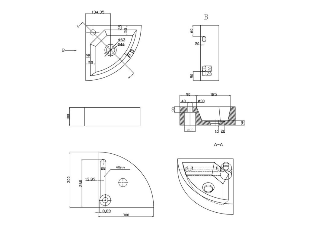 BLOK kamenné umývátko rohové 30x30cm, antracit