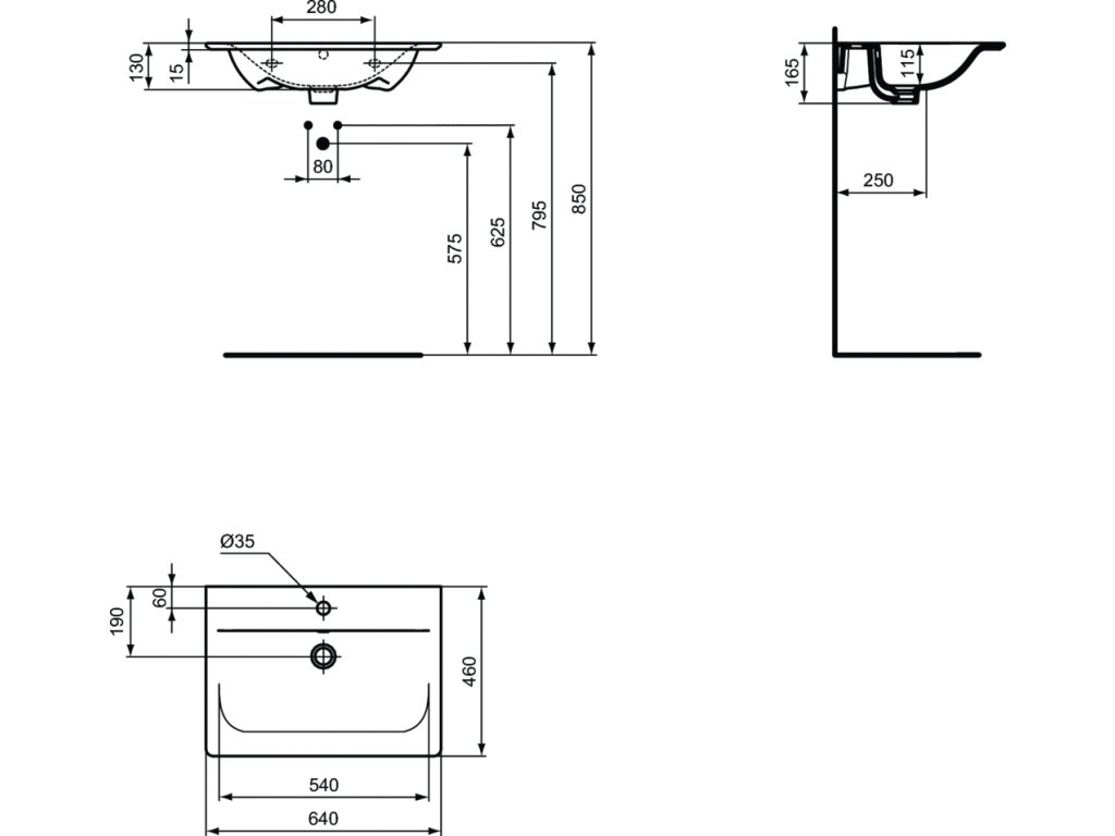 Connect Air nábytkové umyvadlo z jemné žárohlíny (FFC). 1 otvor pro umyvadlovou baterii. Upevnění: 2 šrouby M10 x 140 mm (WW965340) - není součástí balení. Pro kombinaci se skříňkou pod umyvadlo nebo s designovým sifonem.