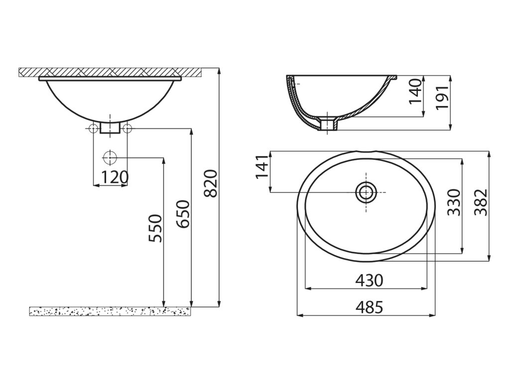 INFINITY keramické umyvadlo zápustné, 55x40cm, bílá
