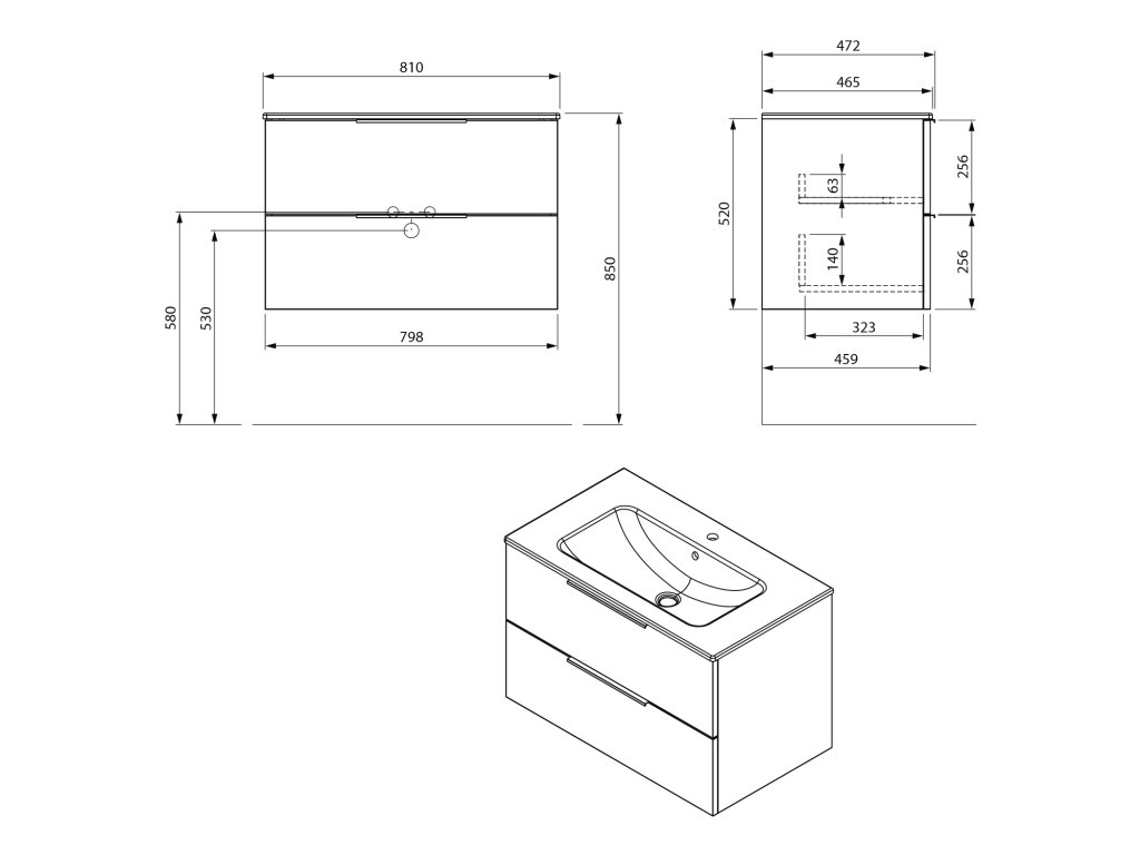 LATUS X umyvadlová skříňka 39,4x50x22cm, antracit matný