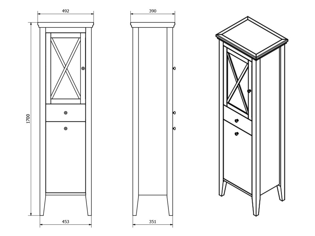 CROSS skříňka vysoká s prádelním košem 49x170x39cm, levá, starobílá