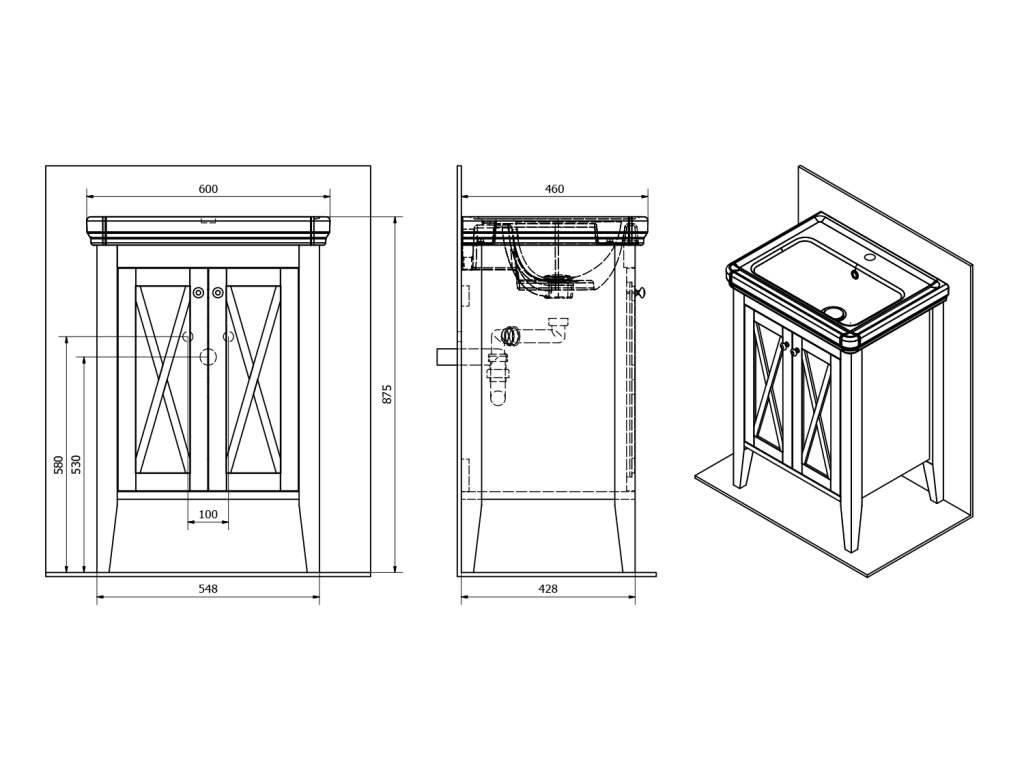 THEIA umyvadlová skříňka 66,3x70x35cm, 2x dvířka, bílá