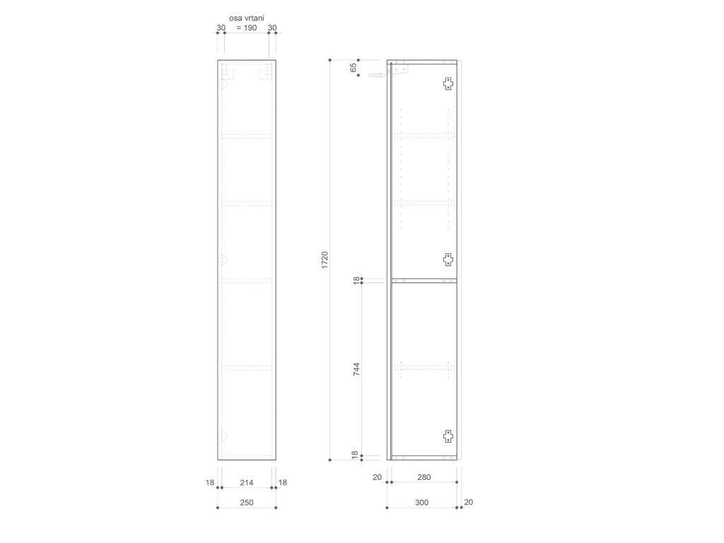 ESPACE skříňka 25x172x32cm, 1x dvířka, levá/pravá, dub alabama
