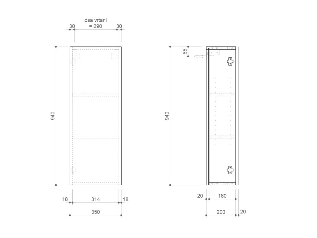 ESPACE skříňka 35x94x22cm, 1x dvířka, levá/pravá, borovice rustik