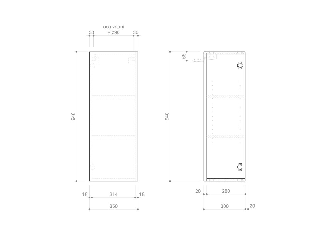 ESPACE skříňka 35x94x32cm, 1x dvířka, levá/pravá, bílá lesk