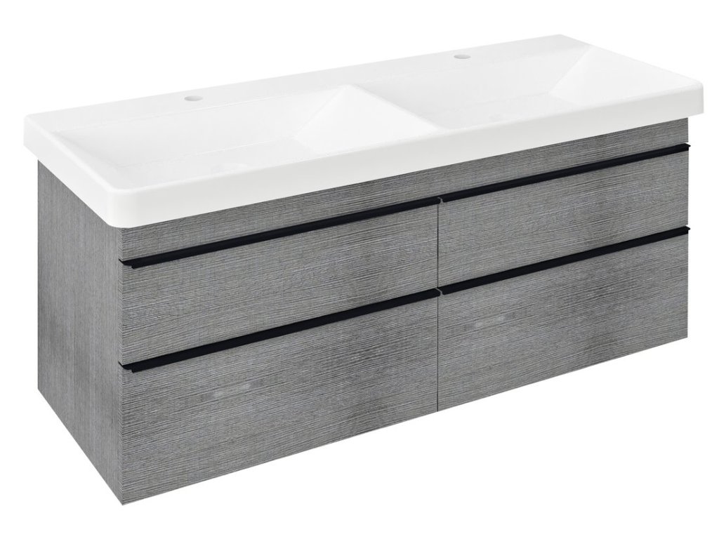 SITIA dvojumyvadlová skříňka 116x50x44,2cm, 4xzásuvka, dub stříbrný
