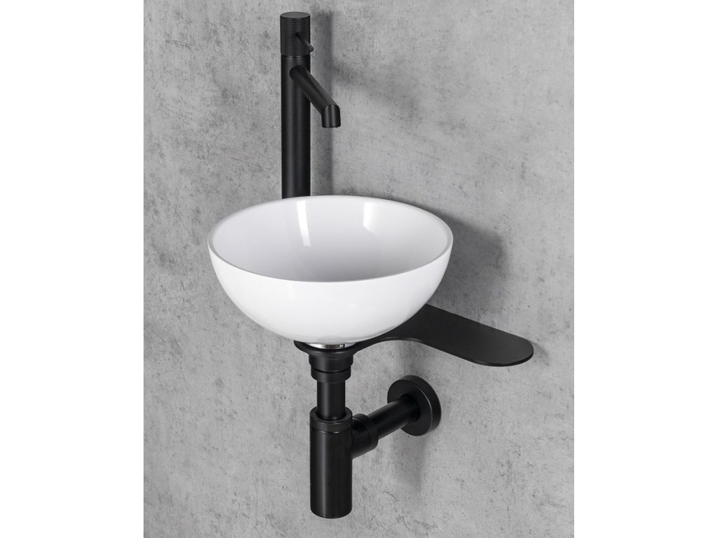 TETRIS umývátko s konzolí pro stojánkovou baterii vlevo, černá mat