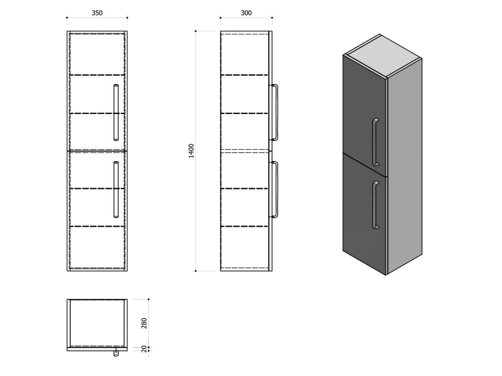 THEIA skříňka vysoká 35x138x30cm, 2x dvířka, levá/pravá, bílá