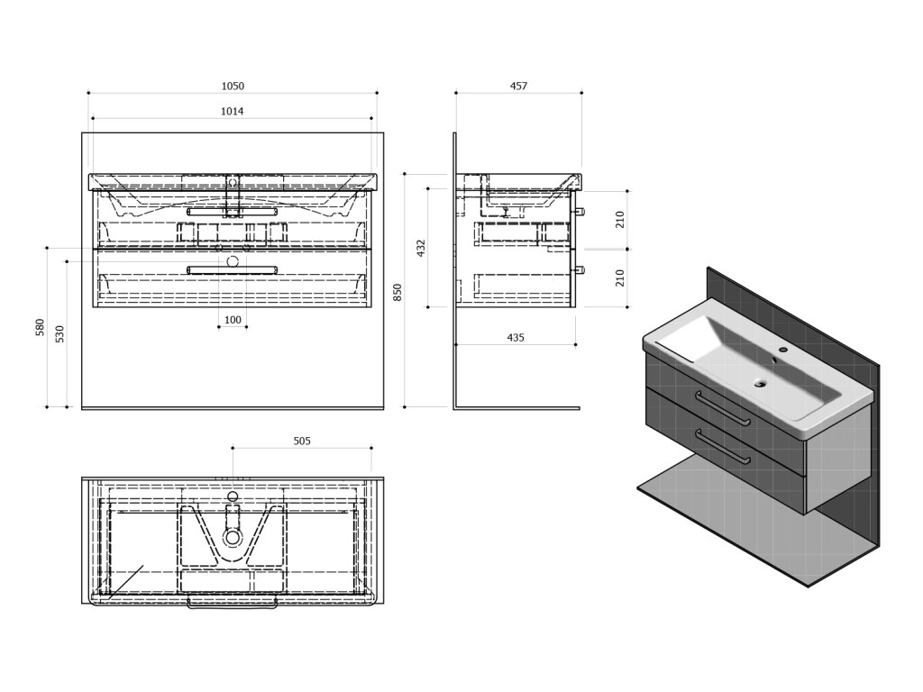 THEIA umyvadlová skříňka 101,4x43,5x44,2cm, 2xzásuvka, dub stříbrný